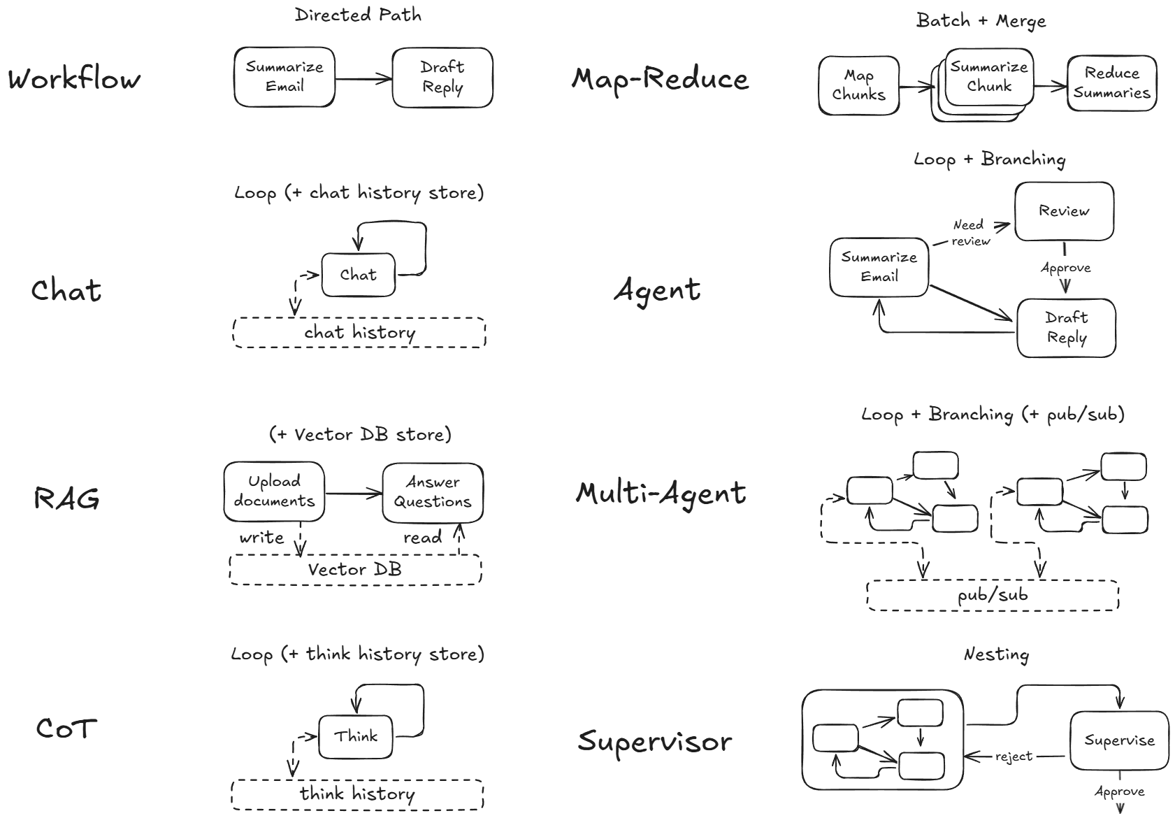 From there, its easy to implement popular design patterns like (Multi-)Agents, Workflow, RAG, etc.