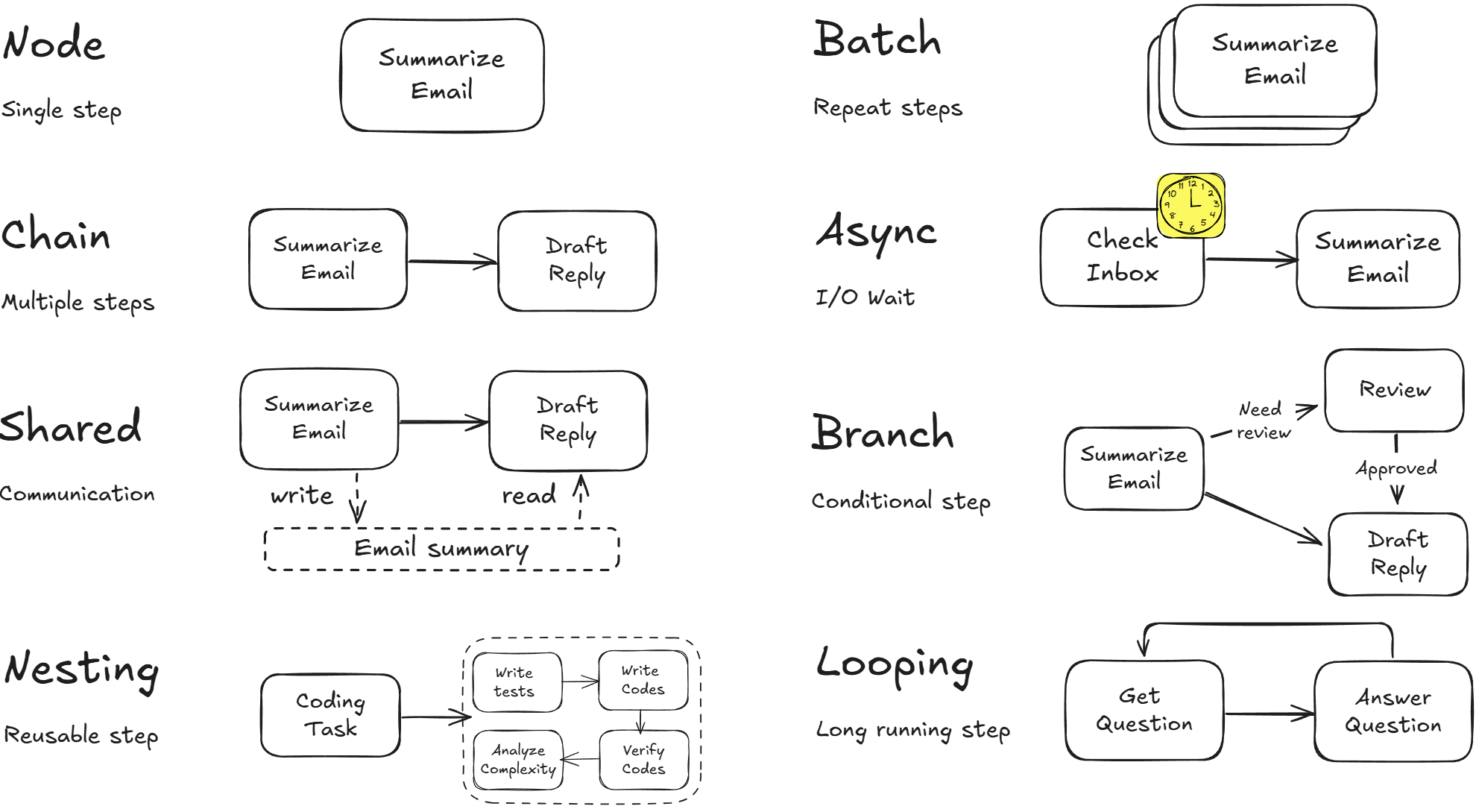 From there, its easy to implement popular design patterns like (Multi-)Agents, Workflow, RAG, etc.